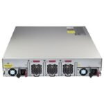 - The switch also includes replaceable dual power supply units and a fan tray module.
