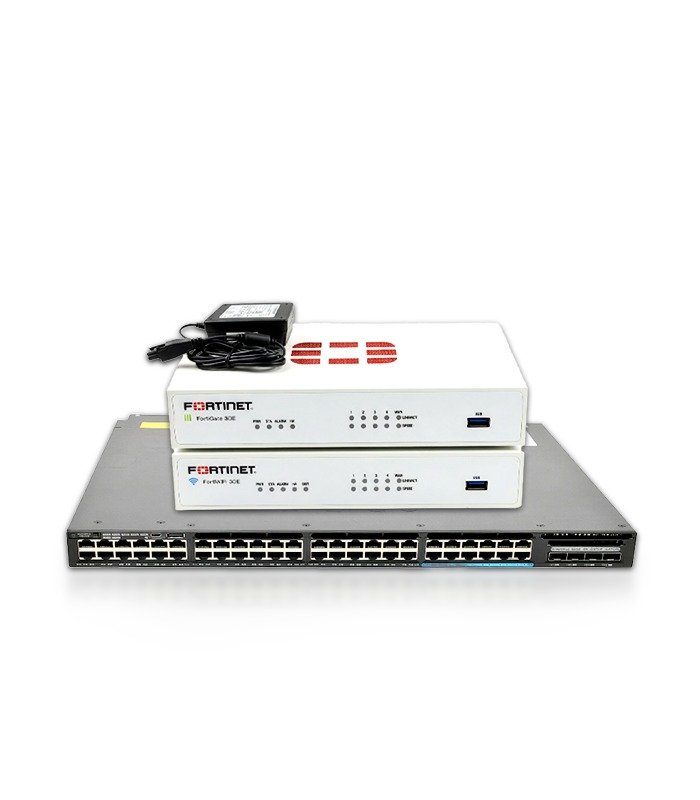 Switch Cisco Catalyst 3650 48Port POE+ 12Port 10G & ( FORTINET FORTIGATE 30E OR Fortinet FortiWiFi-30E )